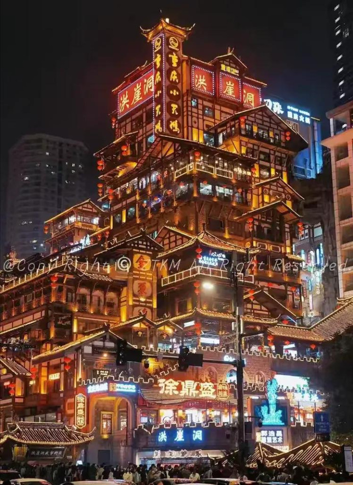 洪崖美景千人秀,八方利、最是荣光。